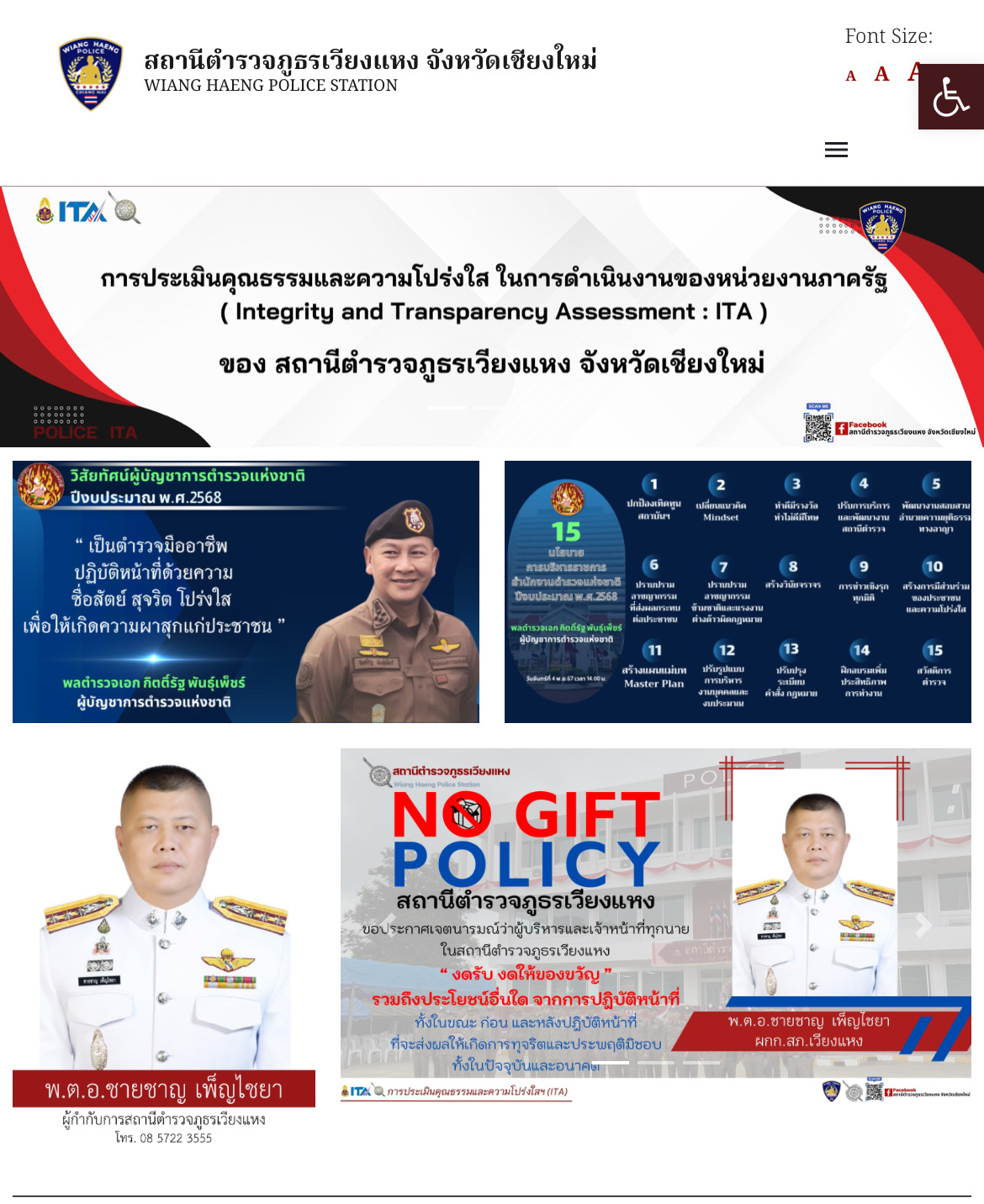 วันที่ 28 มีนาคม 2567 พ.ต.อ.ชายชาญ เพ็ญไชยา ผกก.สภ.เวียงแหง  ได้สั่งการให้ดำเนินการประชาสัมพันธ์ประกาศเจตนารมณ์ของหน่วยงานในการต่อต้านการทุจริต / การรับสินบน และประกาศเจตจำนงสุจริตในการบริหารงาน บริเวณที่ทำการ และสื่อออนไลน์